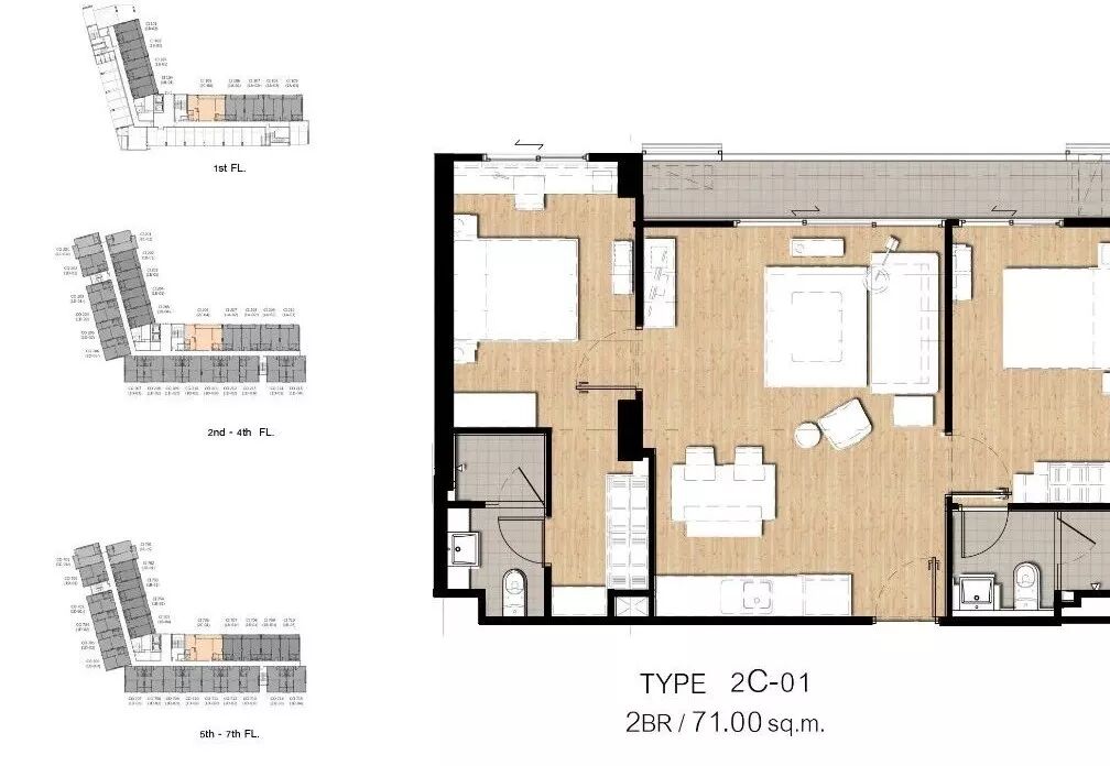 ●户型:单卧室「34-37㎡」两卧室「71㎡」